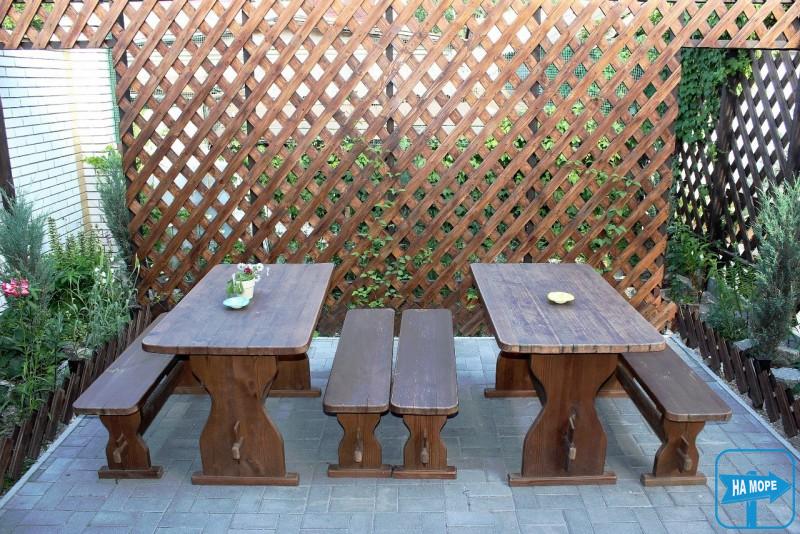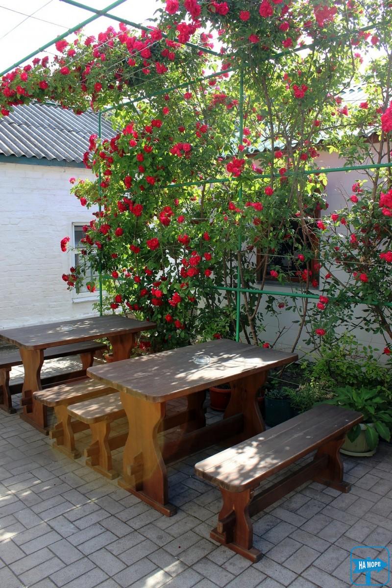Во дворе есть мангал общего пользования, сад, 3 озеленённые террасы со столиками. Двор закрывается на кодовый замок. Тихая, тенистая улица.