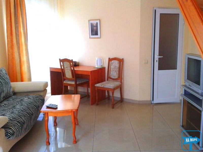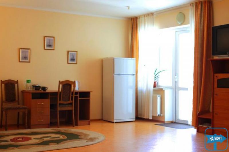(номер полулюкс с кондиционером: 1-но комнатный, трёхместный, в номере - душ, туалет, умывальник (горячая и холодная вода постоянно), спутниковое ТВ, холодильник, чайник, необходимая посуда, кондиционер. В номере возможно размещение 3- 4 человека.