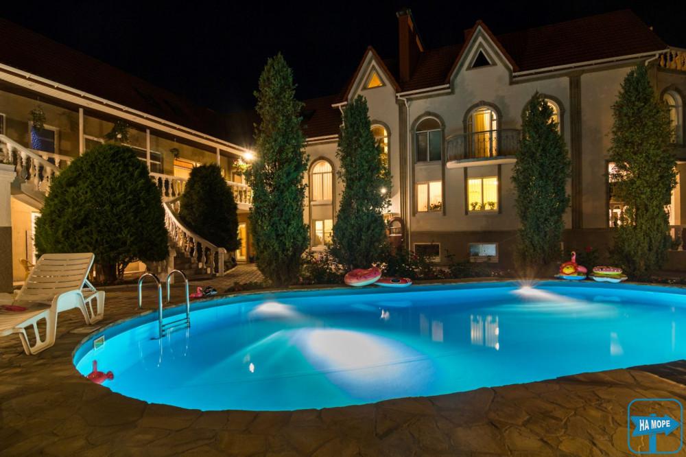 Небольшой, благоустроенный и очень уютный двор оборудован бассейном (гидромассаж и подсветка) глубиной 1,5 м, который позволит качественно отдыхать вне зависимости от погодных условий.
