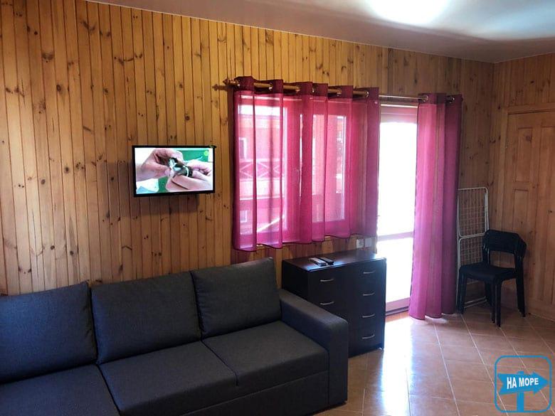 Площадь номера 22 кв.м и террасой перед номером с мягкой мебелью и столом из натурального дерева, рассчитаны на размещение до 4-х человек. Номера оборудованы холодильником, телевизором, отдельной кухней, феном, сушилкой, кондиционером, двуспальной кроватью max 1.6*2 м и диваном.