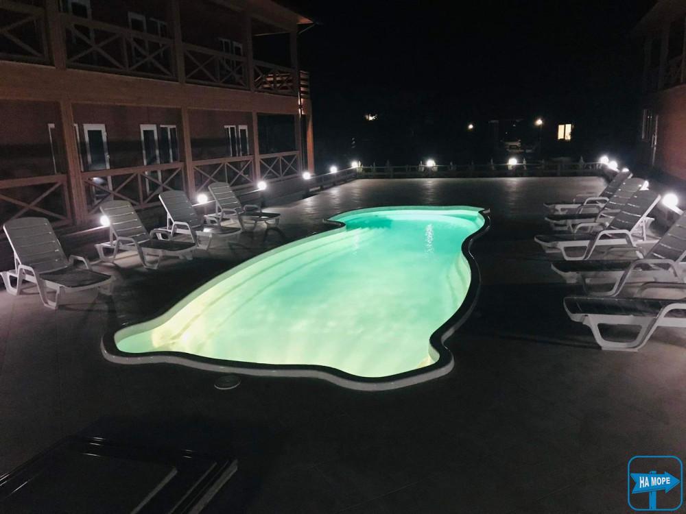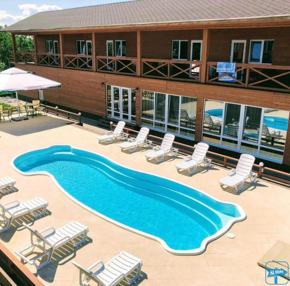 Территория На территории нашего отеля есть 10 м бассейн с плавным переходом глубины от 1.2 м до 1.8 м, детская горка с песочницей, качелями и детским домиком. Для комфортного отдыха есть уютные беседки с мебелью из натурального дерева, мангальная и зона отдыха у бассейна. На территории отеля много зелёных зон: можевельники, розы, декоративные деревья и кустарники.