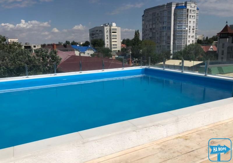 На даху готельного комплексу Атмосфера розташований відкритий басейн, у якого гості можуть відпочивати на шезлонгах або провести незабутній романтичний вечір, насолоджуючись панорамним видом на Перлину Азовського моря, бердянською косою та вечірніми видами міста.