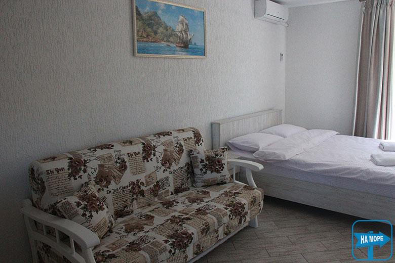 Вилла «Азов» предлагает все условия для комфортабельного отдыха с любимым человеком или всей семьёй. До линии моря стоит пройти всего 20 метров, что позволяет искупаться в любое время суток, не преодолевая больших расстояний.