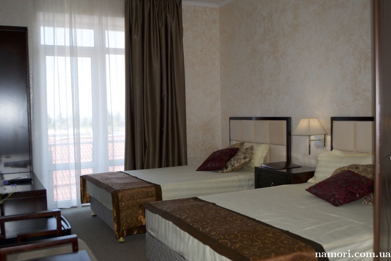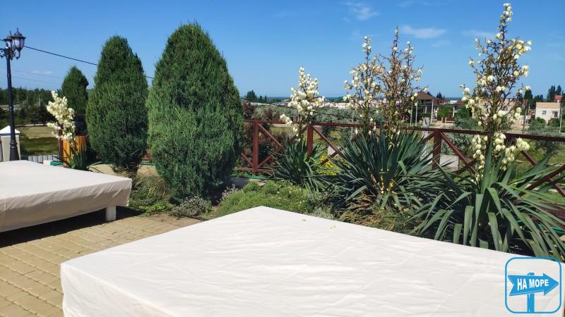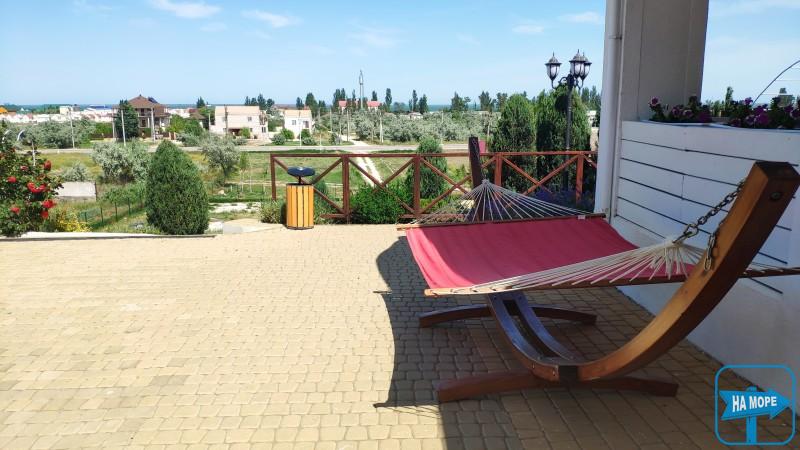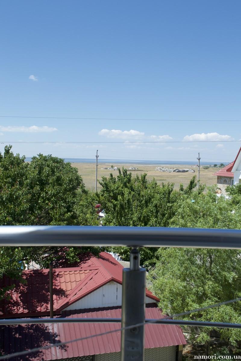 Расположение Гостевого дома GREEN HIIL позволяет обеспечить вид из окон номеров как на Азовское море (люксы, полулюксы, улучшенные стандартные номера), так и на озеро Сиваш (двухместные и трехместные стандартные номера).