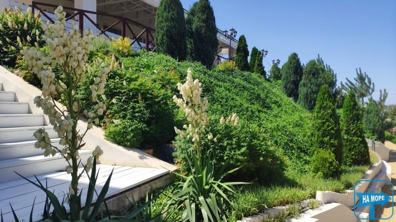 Со склона GREEN HILL открывается панорамный вид на Азовское море и пансионаты «первой линии».