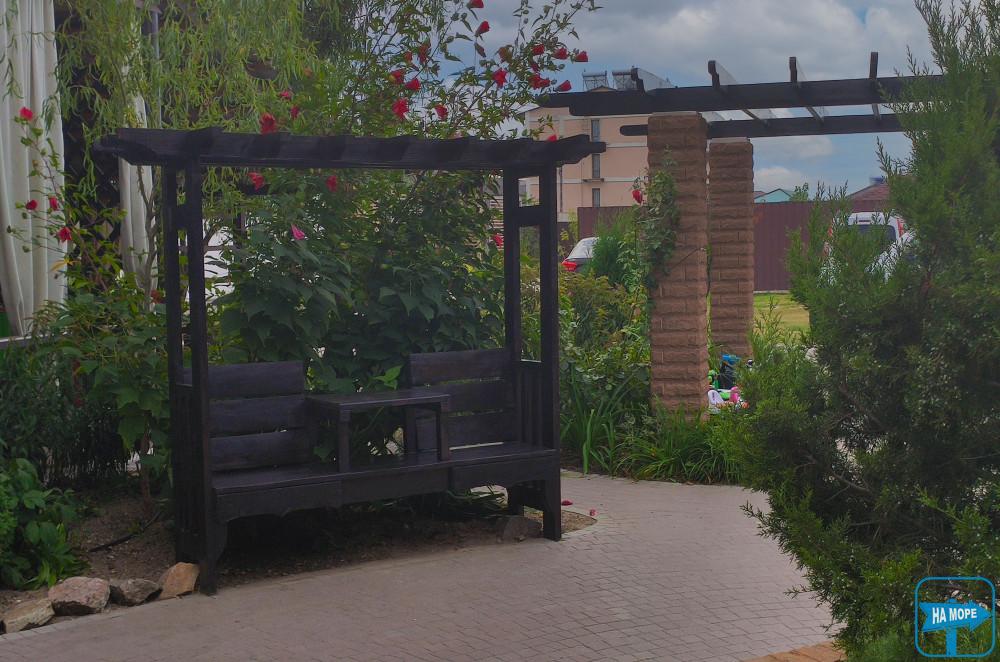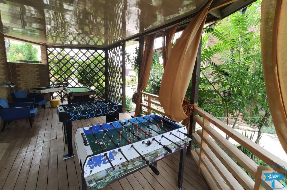 Бунгало - це автономний двокімнатний номер, розташований в окремій будівлі і розрахований на проживання до 5 осіб. Площа номера 40.4 м. кв. Затишний номер із домашньою обстановкою, створений за принципом невеликого гостьового будинку. Номер включає всі функції, необхідні для комфортного відпочинку (вітальня, поєднана з кухнею та обідньою зоною, спальнею, санвузлом та терасою). Ідеально підходить для сімей з дітлахами або невеликої компанії.