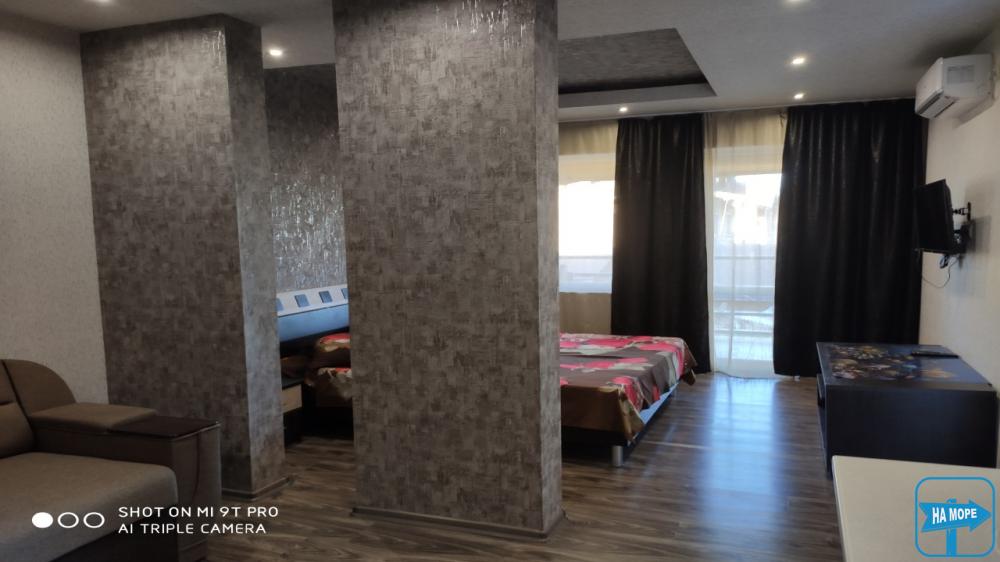Просторі затишні номери з домашньою обстановкою, створені за принципом квартир-студій. Номер включає всі функції, необхідні для комфортного відпочинку (передпокій, житлова зона, кухня, санвузол і балкон). Обладнаний: двоспальне ліжко, розсувний диван, тумбочки, шафа купе, телебачення, журнальний столик, кондиціонер. Ідеально підходить для сімей із діточками.
