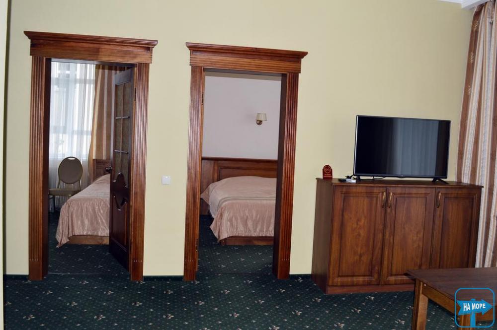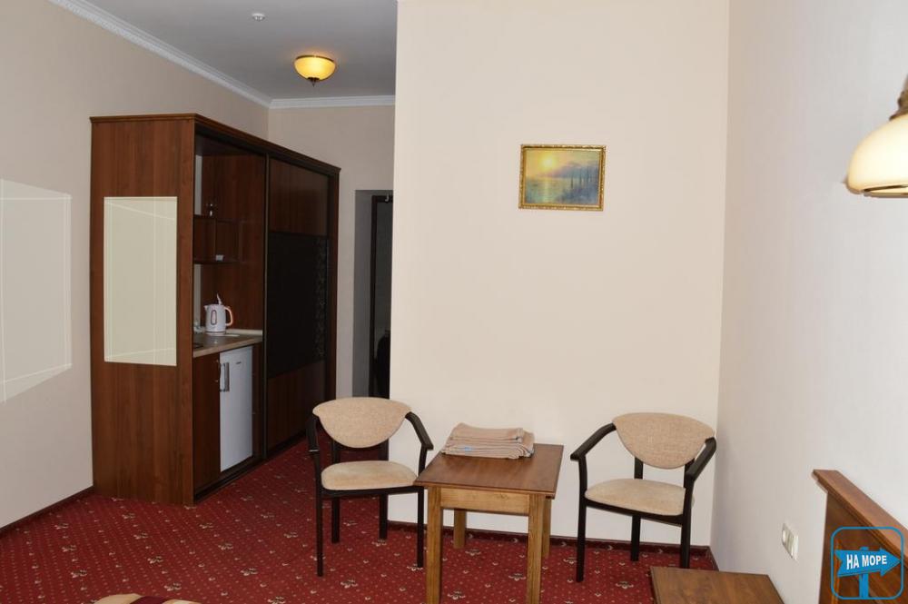 В трехэтажном здании находятся 18 номеров от двухместных до шестиместных повышенной комфортности. В номерах установлена новая качественная стильная мебель, техника, мини-кухни.