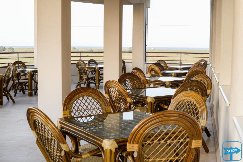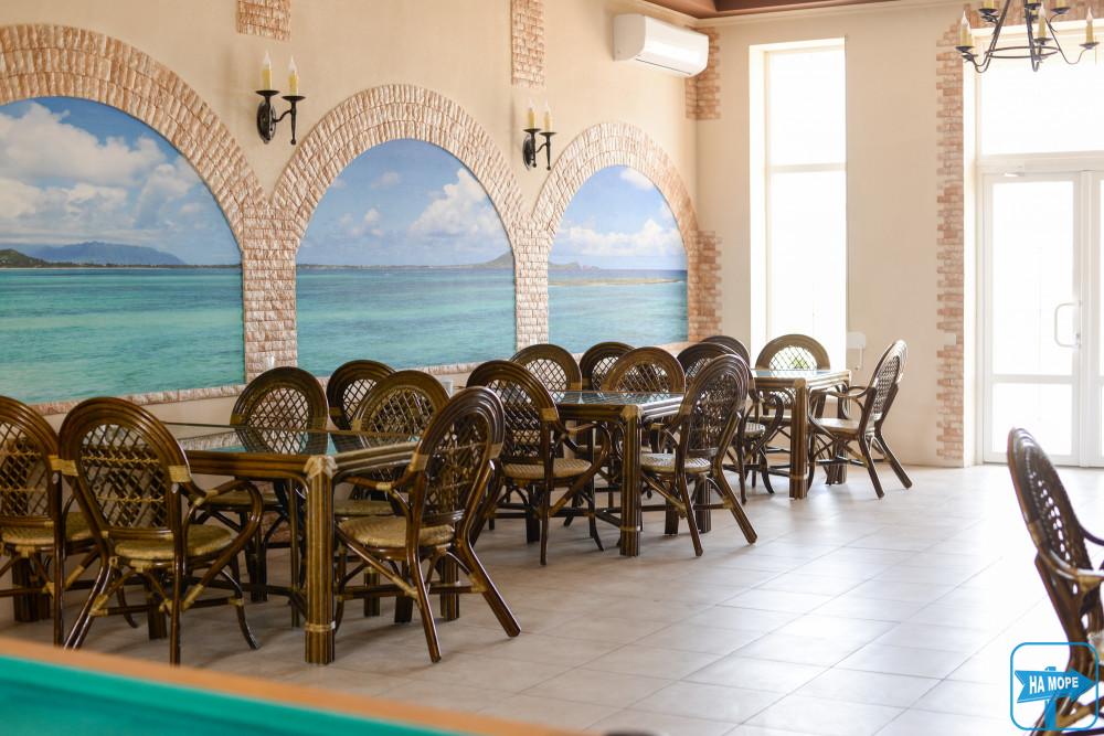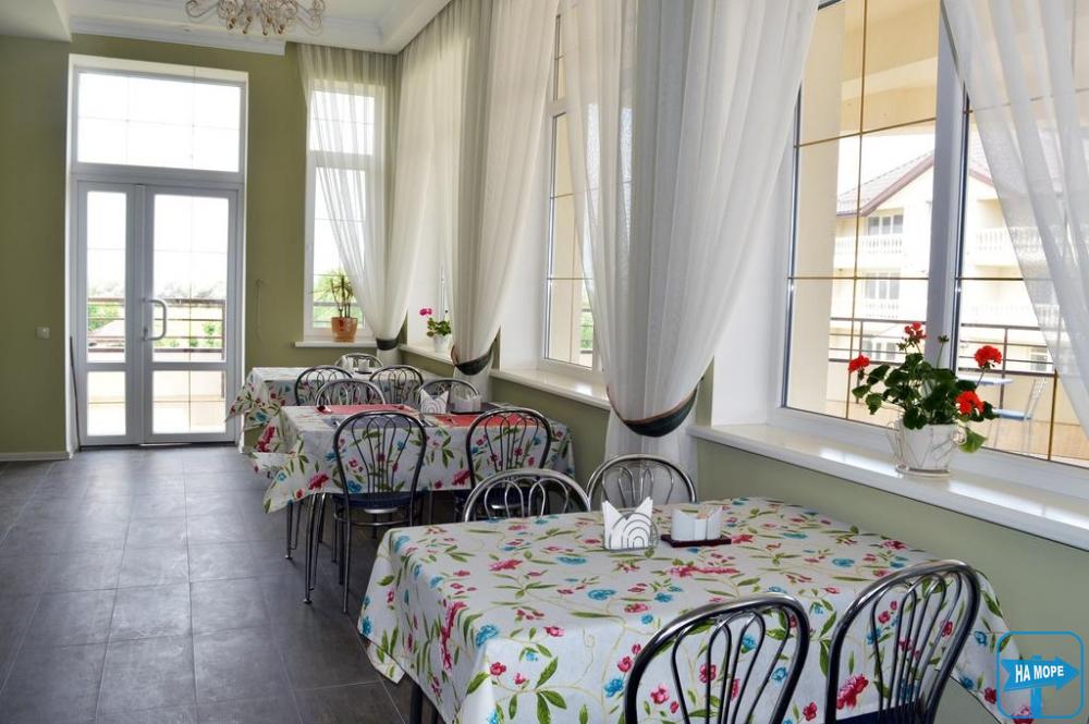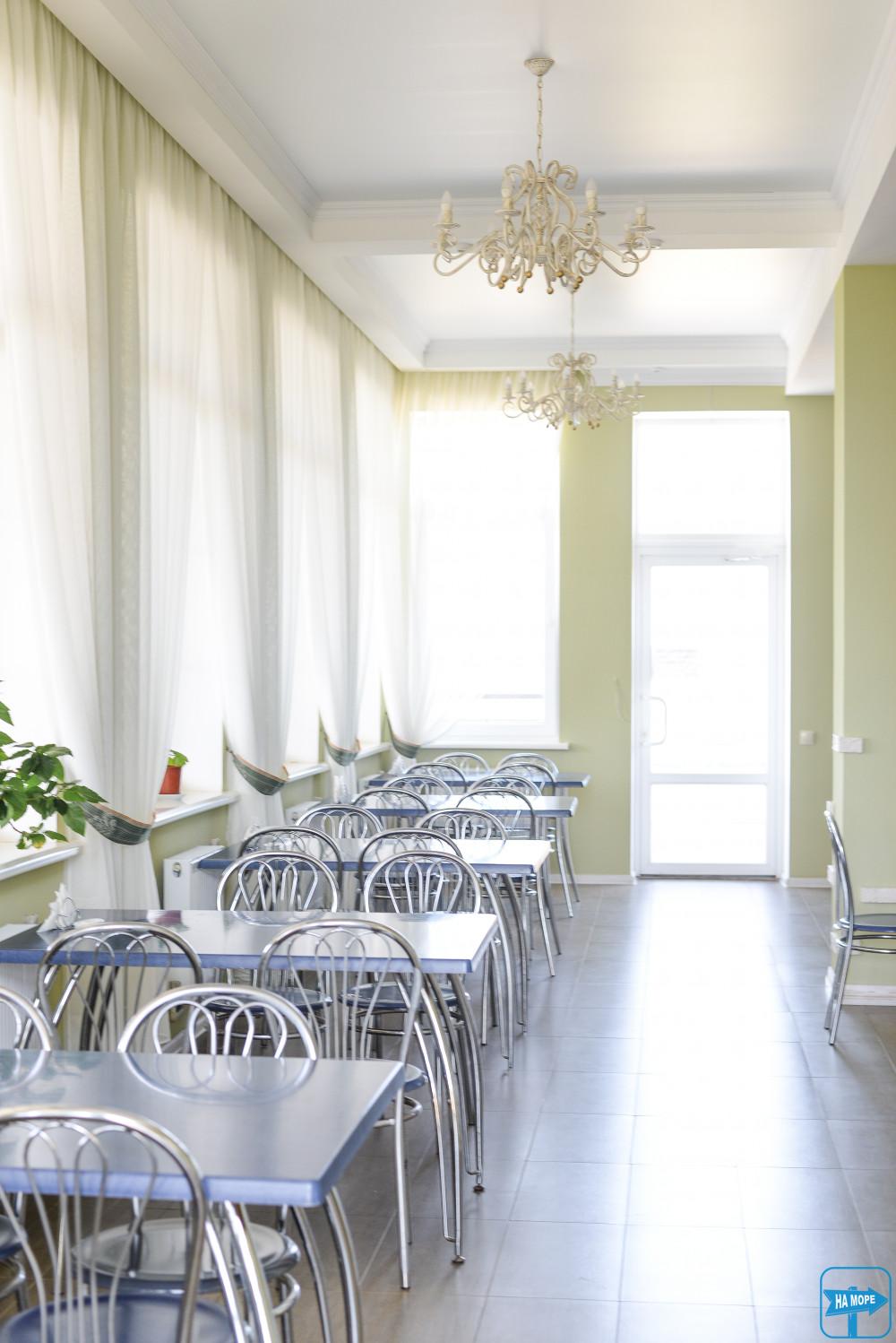 В отдельном здании расположен пищеблок, на втором этаже находится летняя площадка, предназначенная для проведения завтраков, обедов и ужинов на свежем воздухе с видом на море. Романтики могут любоваться закатами и рассветами.