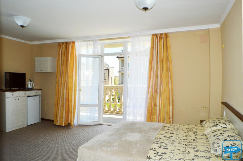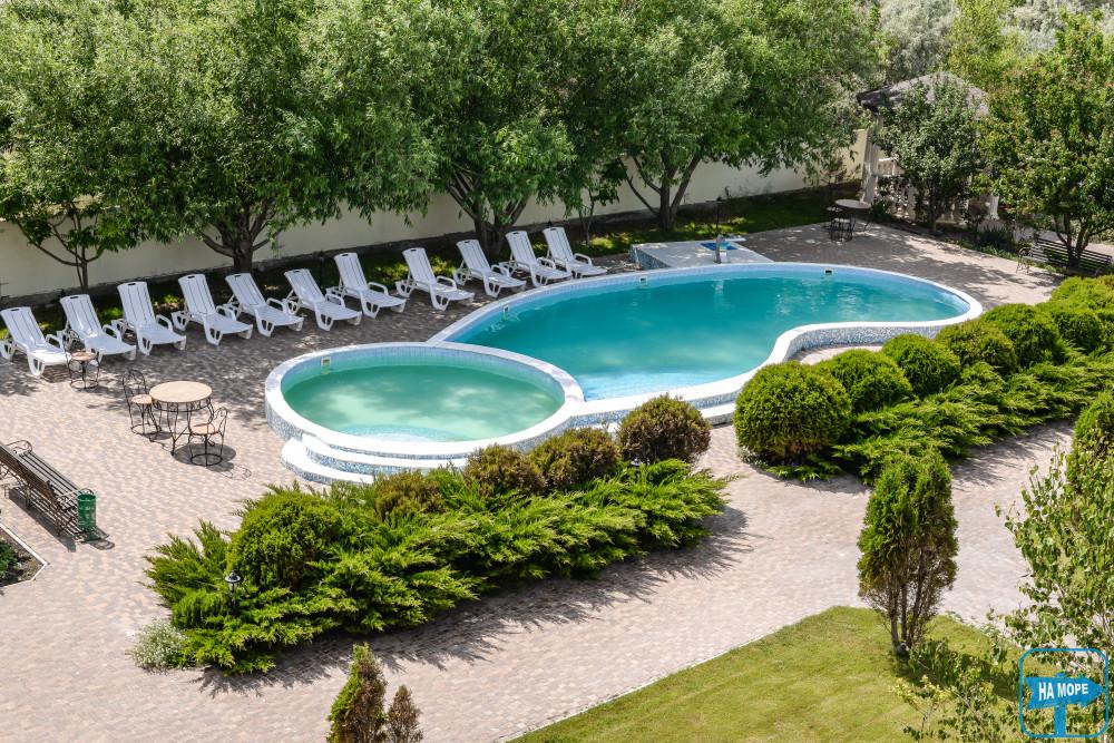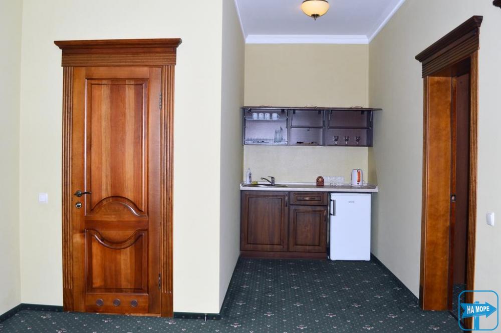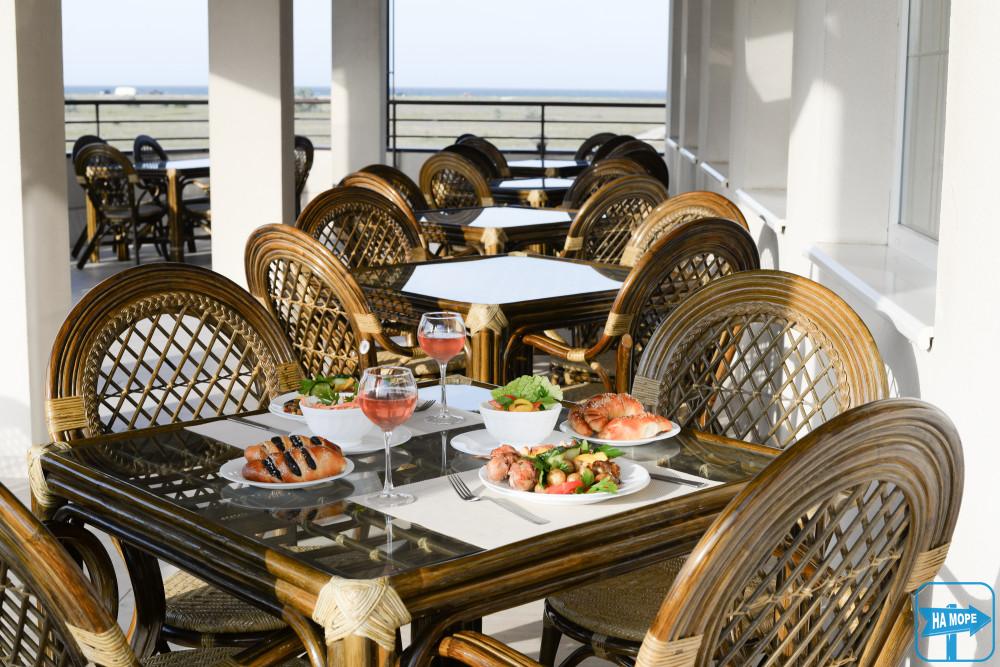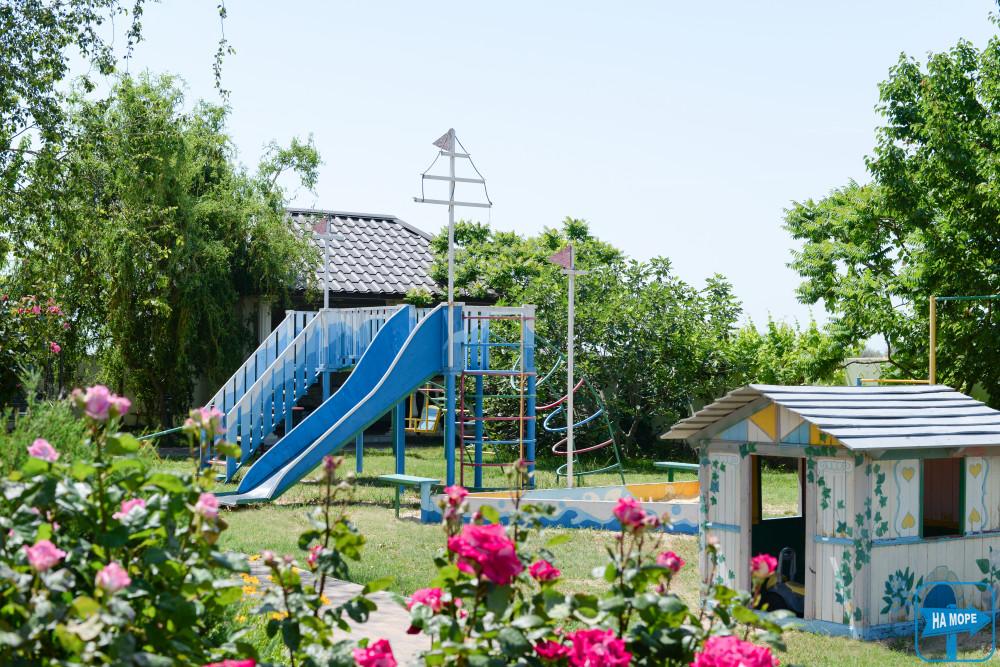 В отдельном здании расположен пищеблок, на втором этаже находится летняя площадка, предназначенная для проведения завтраков, обедов и ужинов на свежем воздухе с видом на море. Романтики могут любоваться закатами и рассветами.